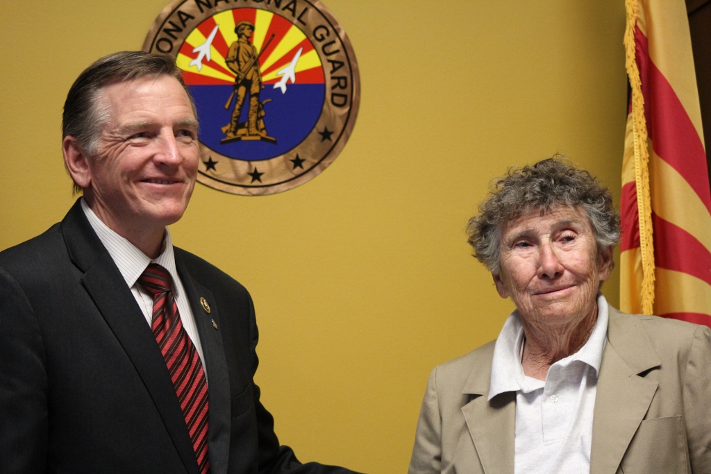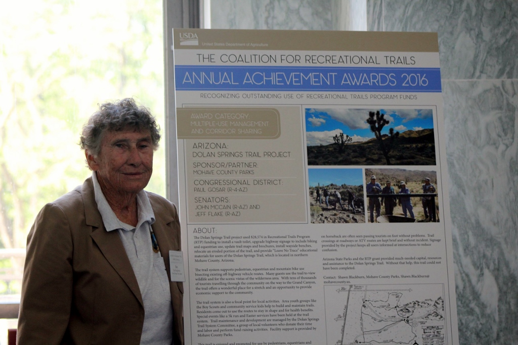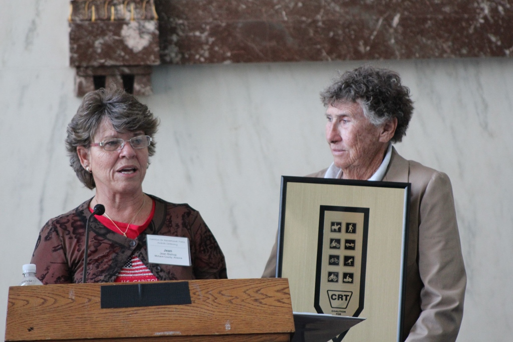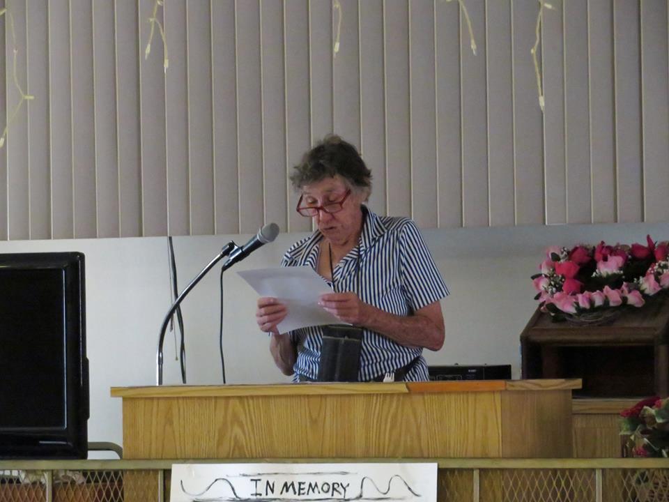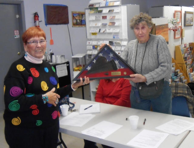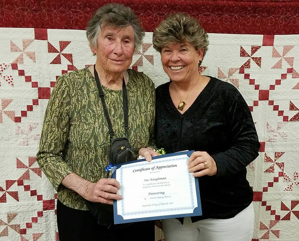 Lee MacWilliam presents award to Sue Baughman for 13 years